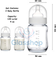 Glass Baby Bottle with Breast-Like Teat and Anti-Colic Valve (Pack of 2, 120 ml / 4oz each) - Suitable for 6 Months+