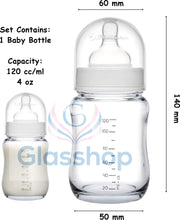 Glass Baby Bottle with Breast-Like Teat and Anti-Colic Valve (120 ml / 4oz) - Perfect for Babies 6 Months and Up