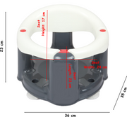 Suction cups, to securely fix the seat to the bathtub. Also works with kitchen and bathroom tiled floors. (floors need to be flat and clean).
