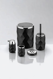 This set contains 5 pieces - 1 toothbrush holder, 1 soap/lotion dispenser, 1 soap dish, 1 medium trash can and 1 toilet brush. One set meets multiple needs.
