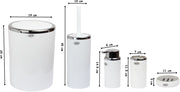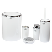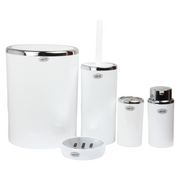 This set contains 5 pieces - 1 toothbrush holder, 1 soap/lotion dispenser, 1 soap dish, 1 medium trash can and 1 toilet brush. One set meets multiple needs.