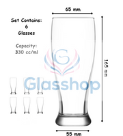 Half Pint Beer Pilsner Glasses. Plain Modern Style. (Pack of 6) (330 cc/ml)