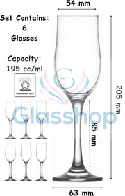 Tulip Champagne Flutes. Long Stem Prosecco Glasses. (Pack of 6) (195 cc/ml)