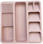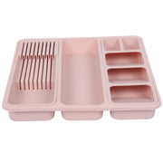 Large Cutlery Tray. 6 Compartments Kitchen Drawer Organiser. (Pink)