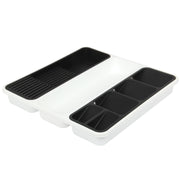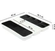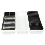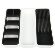 Large Cutlery Tray. 6 Compartments Kitchen Drawer Organiser. (Black & White)