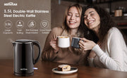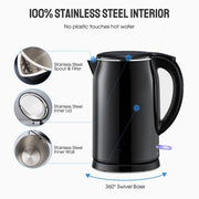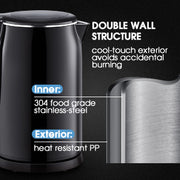 Black Electric Kettle. Cordless Double Wall Stainless Steel Kettle. (1.5L) (2000W)