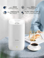 POWERFUL HUMIDIFYING - The internal base of this cool mist humidifier is embedded with excellent materials and stainless steel, and the mist output of this 4. 5L baby humidifier is up to 280ml/h, allowing max 30 hours of working time in low mist, which is perfect for large living room (up to 380 sqft).