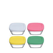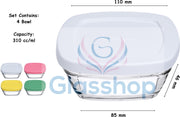 4 pcs Food Storage Container Set with Coloured Lid. Glass Small Bowl. (310 cc/ml)