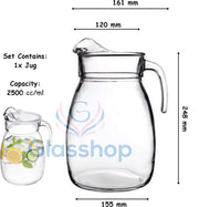 2.5 Litre Glass Jug with Lid. Large Water Carafe Pitcher with Handle.