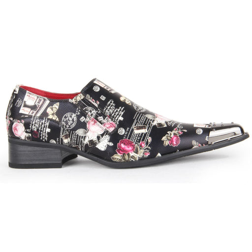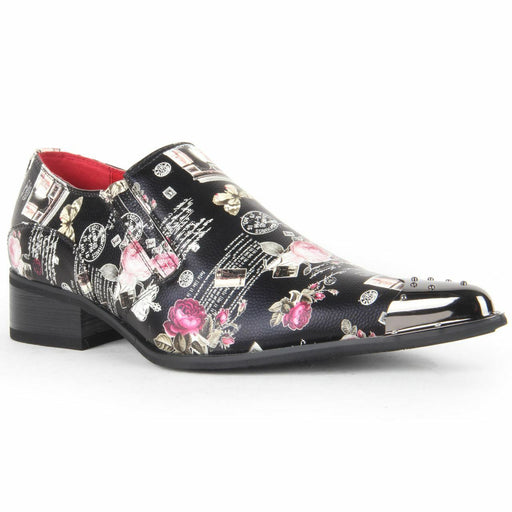 RosselliniRosselliniMens Retro Print Slip On Studded Cap Toe Leather Lined Loafers Shoes 1.5 Inch Western Heel These stylish newsprint styled loafers are a...