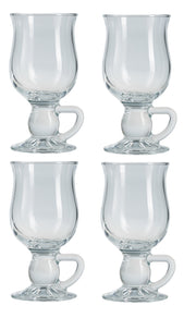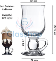 Irish Coffee Glasses. Glass Latte Tea Coffee Mug with Handle. (Set of 4) (270 cc/ml)