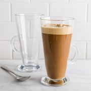 Latte Glasses. Tea Coffee Cups with Handle. Glass Mug. (Pack of 4) (263 ml)