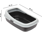Cat Litter Tray. Big Open Cat Litter Box Tray. (Black & Grey)