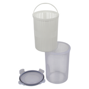 ✅ Smart 3-Piece Design – Includes a transparent outer container with measurement markings (100ml–1500ml), a removable strainer basket with handle, and a secure airtight lid with locking clips.
