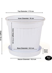 Refer to the dimensions charts and images in the listing to ensure the perfect fit for your space. The pots come with matching saucers, providing a convenient and elegant solution to prevent dirt on your table or floor. Crafted from durable premium plastic, these flower pots are weather-resistant and suitable for both indoor and outdoor use.