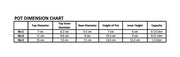 No: 5 (1.3 Lt): Top Diameter: 15 cm x Top Inner Diameter: 13 cm x Base Diameter: 11 cm x Height: 14.5 cm x Inner Height: 12.2 cm