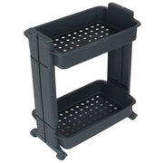 2 Tier Slide Out Troley Rack Shelf Holder with Wheel. Kitchen Bathroom Organizer.