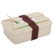 Featuring a beige speckled colour and matching knife and fork. The perfect size to fit all manners of lunches for work, school or just packing into a day trip bag. Coming with an elasticated strap that holds the lid on to ensure that it doesn't fall open in your bag. The included cutlery can be slid into the elasticated belt to be kept with the lunch box.