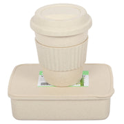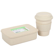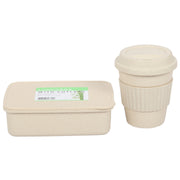 Lunch Box with Cutlery. Coffee Hot Drink Cup. Reusable Lunch Box Set. (Beige)