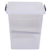 This clear plastic container with a secure lid is perfect for storing a variety of items.