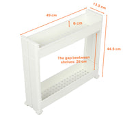 Slide Out Slim Storage Tower. 2-Tier Moving Wall Cabinet Organiser Rack on Wheel