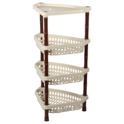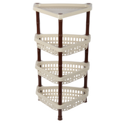 Optimize your space with this sleek 4-tier corner rack, specifically designed to fit neatly into corners and provide organized storage. Whether for fruits, vegetables, toiletries, or office supplies, this rack offers deep baskets with ventilation holes that allow for better airflow, keeping your items fresh and dry. Made from high-quality, lightweight plastic, this rack is durable enough for everyday use, yet easy to move and install.