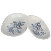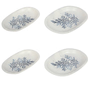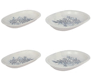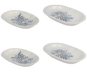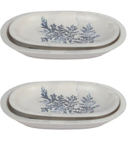 2 Different Sizes Stoneware Serving Platter. Salad Appetizer Dishes. Decorative Blue Flower Pattern. (Set of 4)