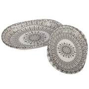 2 Different Sizes Stoneware Serving Platter. Salad Appetizer Dishes. Decorative Ethnic Theme. (Set of 2)