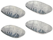 Ceramic Serving Platter. Salad Appetizer Dishes. Decorative Pine Marbled Pattern. (Set of 4)