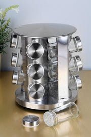 Rotating Spice Rack. 12 Glass Spice Jar. Stainless Steel. Revolving Free Stand.