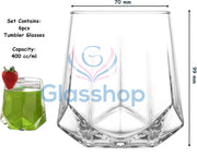 Glasshop 6-Pack Whisky Tumbler Set. 400ml Elegant Diamond-Cut Drinking Glasses.