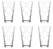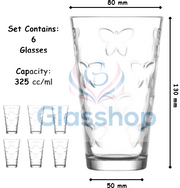 Highball Everyday Drinking Glasses. Butterfly Embossed Glass. (Set of 6) (325ml)