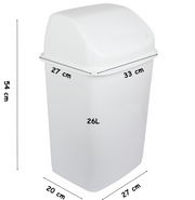 26L Waste Bin. Swing Lid Bin. Strong Plastic Recycling Rubbish Bin. (White)