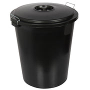 90L Heavy Duty Garden Rubbish Refuse Bin. Metal Handles with Clip Lid. (Black)