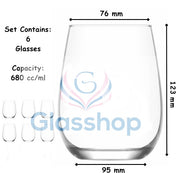 6x Stemless Gin Tonic Glasses. Large Balloon Cocktail, Wine Glass Set. (680 ml)