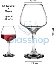 Large Wine Glasses Set. Stemware Red Wine Goblets. (Pack of 6) (455 cc/ml).