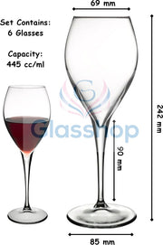 Red Wine Glasses. Large Wine Glass Set. Wine Goblet. (Pack of 6) (445 cc/ml)