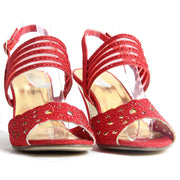 Womens Ladies Sparkling Diamante Block Heel Party Shoes Buckle Up Sandals