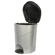 The bin features a soft-close lid that prevents loud noises and ensures a controlled and silent closing action.
