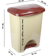 The bin has the following dimensions: Height: 56cm, Length: 44cm, and Width: 34cm. The inner bucket has a height of 45.5cm.