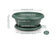 Decorative Flower Plant Pot and Saucer. Round Flat Pot Planter. (6 Sizes).