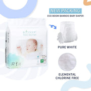 【More Eco】: Designed for baby’s sensitive skin, ECO BOOM diapers do not contain latex, PVC or antioxidants.We choose pure white design to keep your baby’s skin away from chemical printing materials.