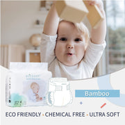 【100% Bamboo Fiber 】: ECO BOOM bamboo nappies topsheet & backsheet are made of non-woven bamboo fabric with FSC certification, it can reduce 30% plastic waste caused by disposable nappies.