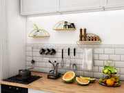 Decorative Mounted Wall Shelf. Ellipse Shape Unit Rack. (Single) (Gold Metal & Solid Wood)