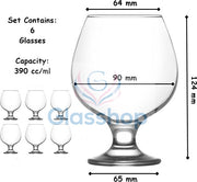 Brandy Cognac Liqueur Snifter Glasses. Small Brandy Glass. (Pack of 6) (390cc/ml)