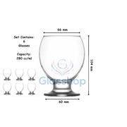Brandy Cognac Snifter Glasses. Tumbler Cocktail Glass Set. (Set of 6) (280ml)