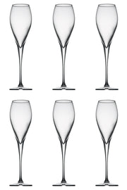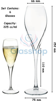 Champagne Flute Glasses Set. Long Stem Prosecco Flutes. (Pack of 6) (225 cc/ml)