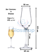 Champagne Glasses. Long Steam Prosecco Flute. Drink Party. (Pack of 6) (190 ml).