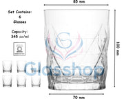 Whisky Tumbler Drinking Glasses. Diamond Cut Design. (Set of 6) (345 cc/ml)