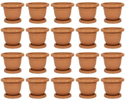 Plastic Round Flower Plant Pot & Saucer Planter. (Pack of 20)